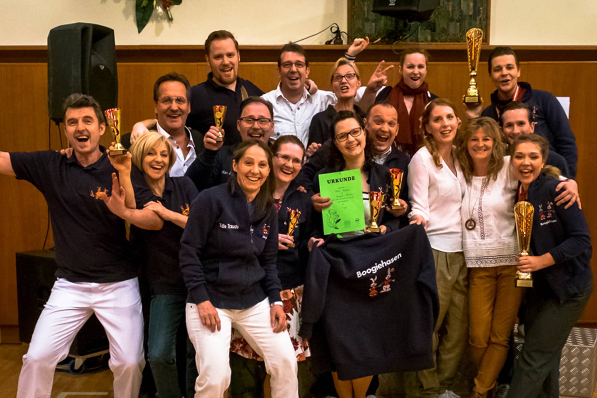 Since 2014 we run the club BWC Boogiehasen, which was already founded in 1991 by Andreas parents. The club is not only about Boogie Woogie as a competition dance, but also about the pure pleasure of Boogie Woogie and Swing. Due to our close connections to international top dancers we continuously integrate new techniques and trends into our lessons. In addition to Boogie Woogie, we also incorporate influences from other swing dances such as Lindy Hop, Charleston and Solo Jazz. For over three decades, we have offered a family-like community where dance enthusiasts can meet like-minded people and develop their dancing skills.